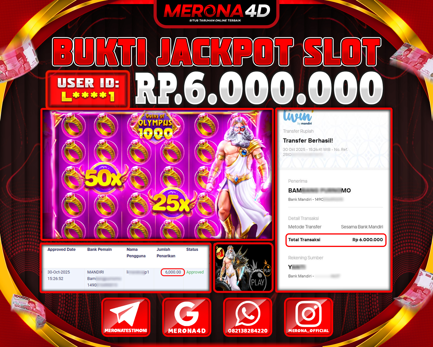 Selamat Kepada Member MERONA4D Lβ­‘οΏ½***οΏ½β­‘1 Telah Jackpot Di GATES OF OLYMPUS 1000