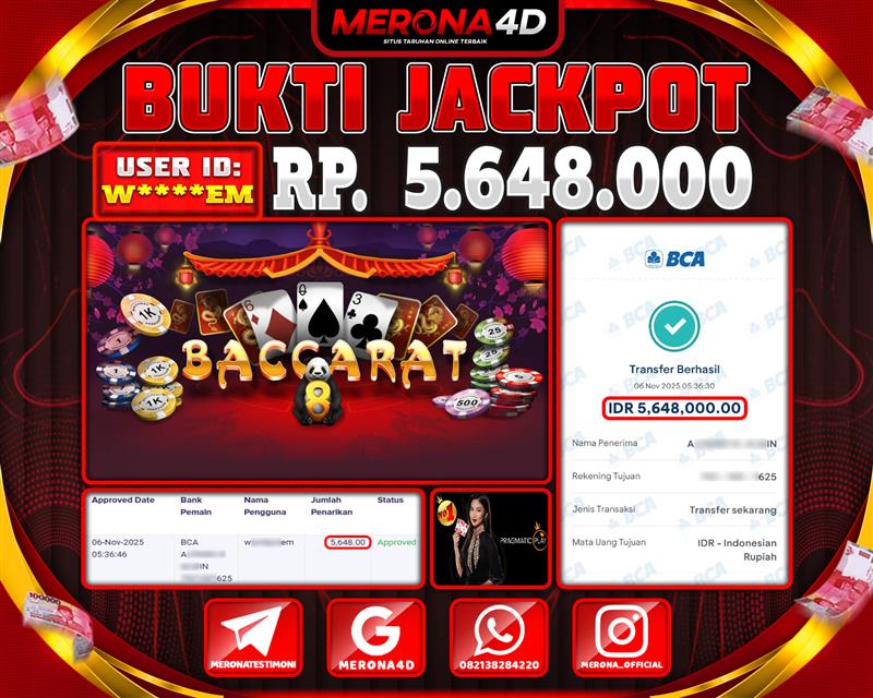 Selamat Kepada Member MERONA4D W*****EM Telah Jackpot Di BACCARAT