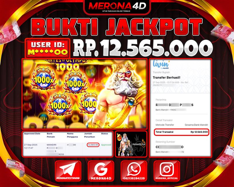 Selamat Kepada Member MERONA4D M****O Telah Jackpot Di GATES OF OLYMPUS 1000