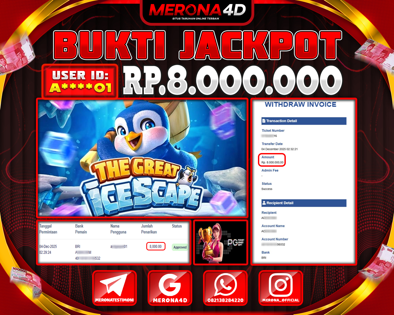 Selamat Kepada Member MERONA4D A*****1 Telah Jackpot Di THE GREAT ICESCAPE