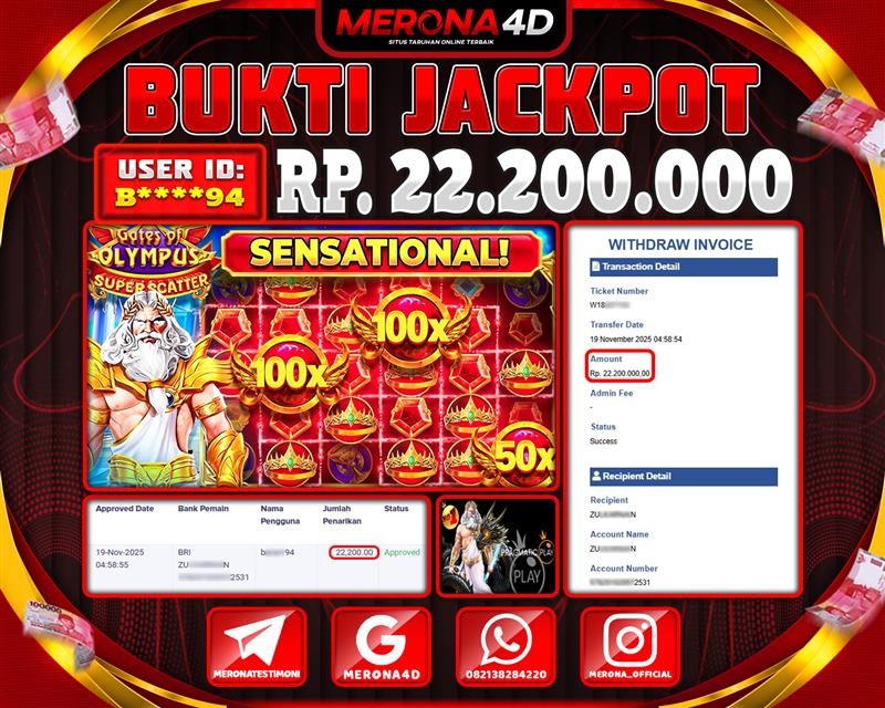 Selamat Kepada Member MERONA4D B*****94 Telah Jackpot Di GATES OF OLYMPUS SUPER SCATTER