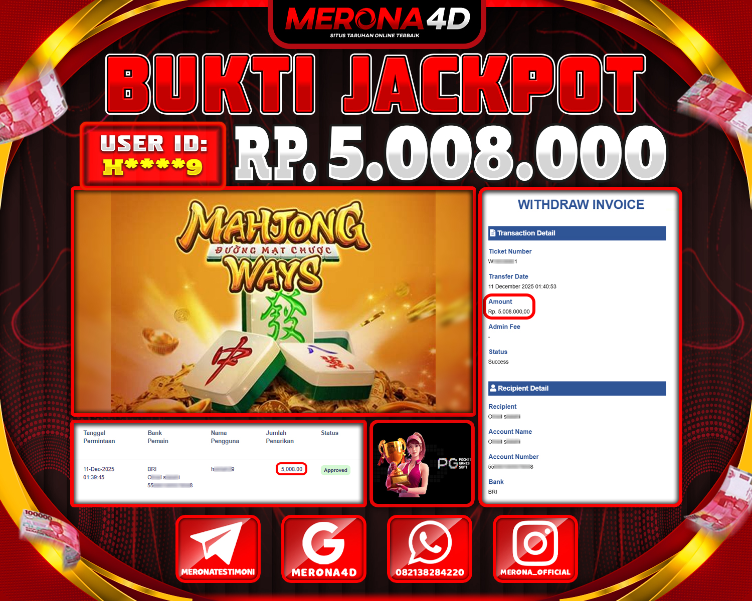 Selamat Kepada Member MERONA4D H****9 Telah Jackpot Di MAHJONG WAYS