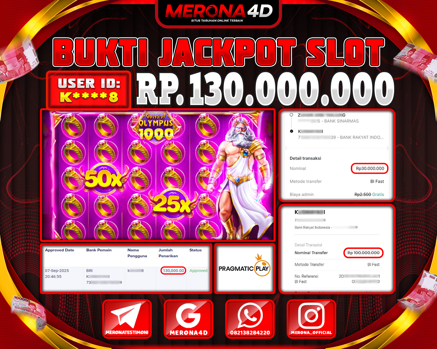 Selamat Kepada Member MERONA4D K****8 Telah Jackpot Di GATES OF OLYMPUS 1000