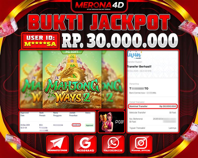 Selamat Kepada Member MERONA4D N****N Telah Jackpot Di MAHJONG WAYS