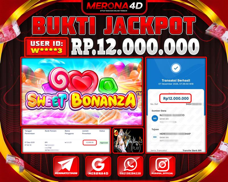Selamat Kepada Member MERONA4D W*****3 Telah Jackpot Di SWEET BONANZA