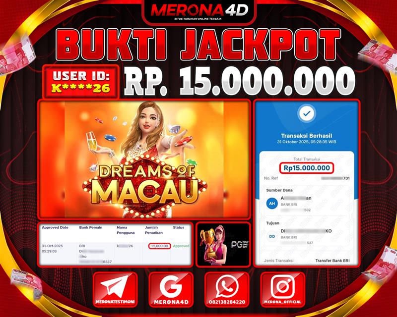 Selamat Kepada Member MERONA4D K*****26 Telah Jackpot Di DREAMS OF MACAU