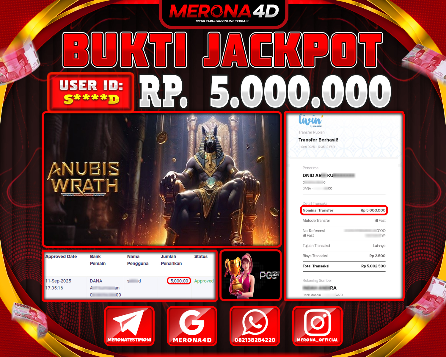 Selamat Kepada Member MERONA4D S****D Telah Jackpot Di ANUBIS WRATH