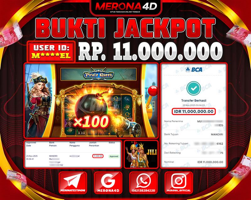 Selamat Kepada Member MERONA4D M*****EL Telah Jackpot Di PIRATE QUEEN 2
