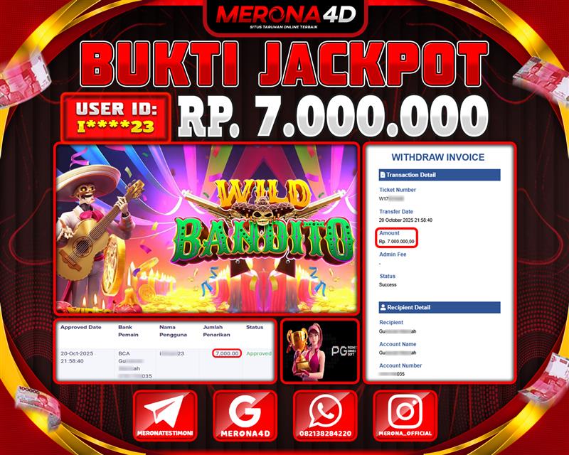 Selamat Kepada Member MERONA4D I*****23 Telah Jackpot Di WILD BANDITO