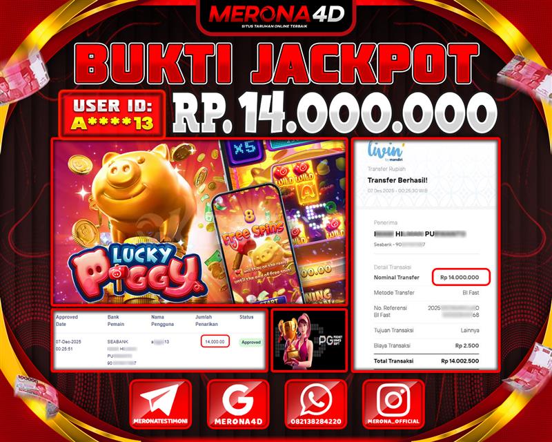 Selamat Kepada Member MERONA4D A*****13 Telah Jackpot Di LUCKY PIGGY