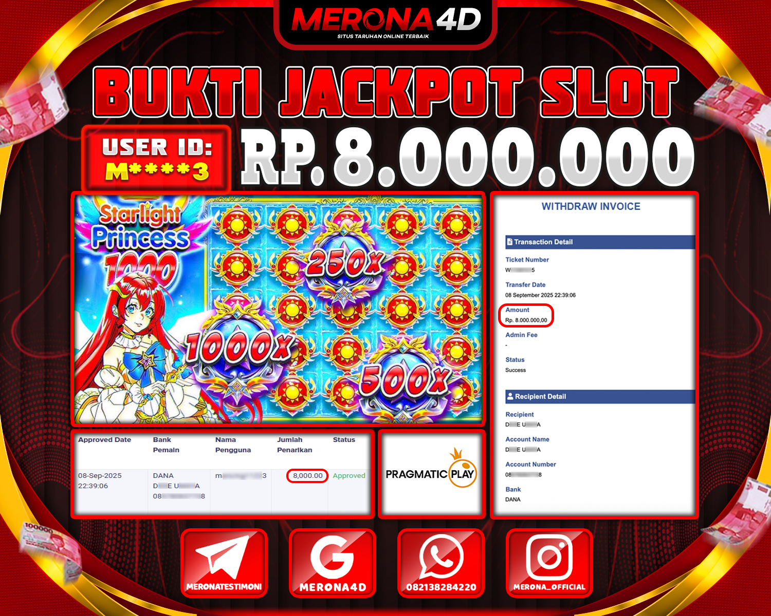 Selamat Kepada Member MERONA4D M****3 Telah Jackpot Di STARLIGHT PRINCESS 1000