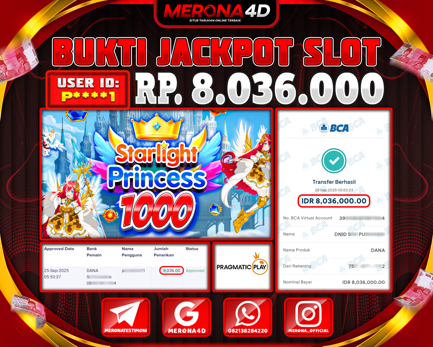 Selamat Kepada Member MERONA4D P****1 Telah Jackpot Di STARLIGHT PRINCESS 1000